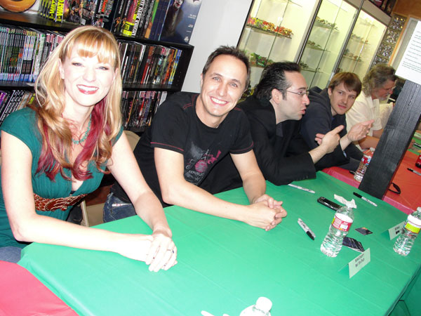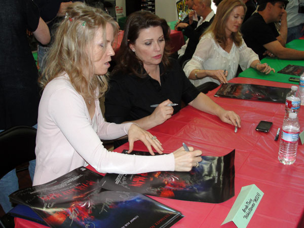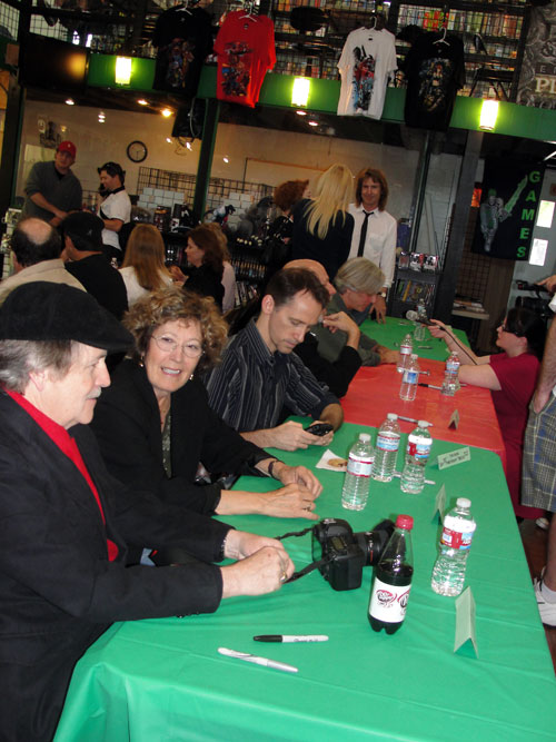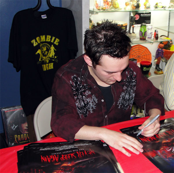 Yesterday Horror.com was on the scene at Dark Delicacies Bookstore in Burbank, CA., for the launch party and massive signing event for the ultimate A Nightmare on Elm Street documentary, NEVER SLEEP AGAIN. The doc comes to DVD on Tuesday, May 4 -- but fans were treated to a sneak peek with copies on hand for those who were able to buy them (also via mail order) and have them signed by the amazing array of Freddy's friends... here's who's who at the event: